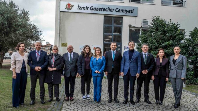 CHP tarafından düzenlenen Ege Yerel Medya Buluşması kapsamında bir araya gelen CHP Medya ve Halkla İlişkilerden Sorumlu Genel Başkan Yardımcısı Burhanettin Bulut, CHP Parti Meclis Üyesi İzmir Milletvekili Deniz Yücel, CHP Eskişehir Milletvekili Utku Çakırözer, CHP İzmir İl Başkanvekili Murat Aydın, Karabağlar Belediye Başkanı Helil Kınay, Efes Selçuk Belediye Başkanı Filiz Ceritoğlu Sengel ve Gazeteci Nevşin Mengü, İzmir Gazeteciler Cemiyeti’ni ziyaret etti.