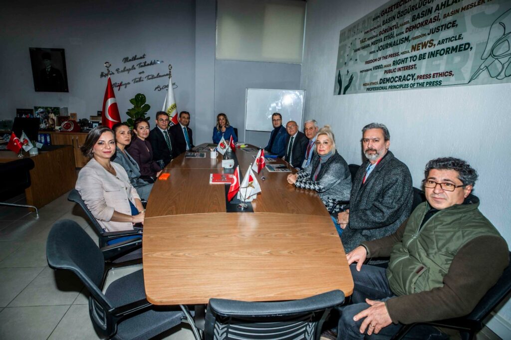 İzmir Gazeteciler Cemiyeti Başkanı Dilek Gappi, Başkan Yardımcısı Mehlika Gökmen ve Genel Sekreter Reşat Yörük’ün ev sahipliğindeki ziyarette; Uluslararası Basın Merkezi gezilirken; yerel medyanın yaşadığı sorunlar ve onları aşma mücadelesi, basın özgürlüğü ve gazetecilere eğitim destekleri, meslekte nitelik ve donanımın artmasında cemiyetlerin rolü konuşuldu.